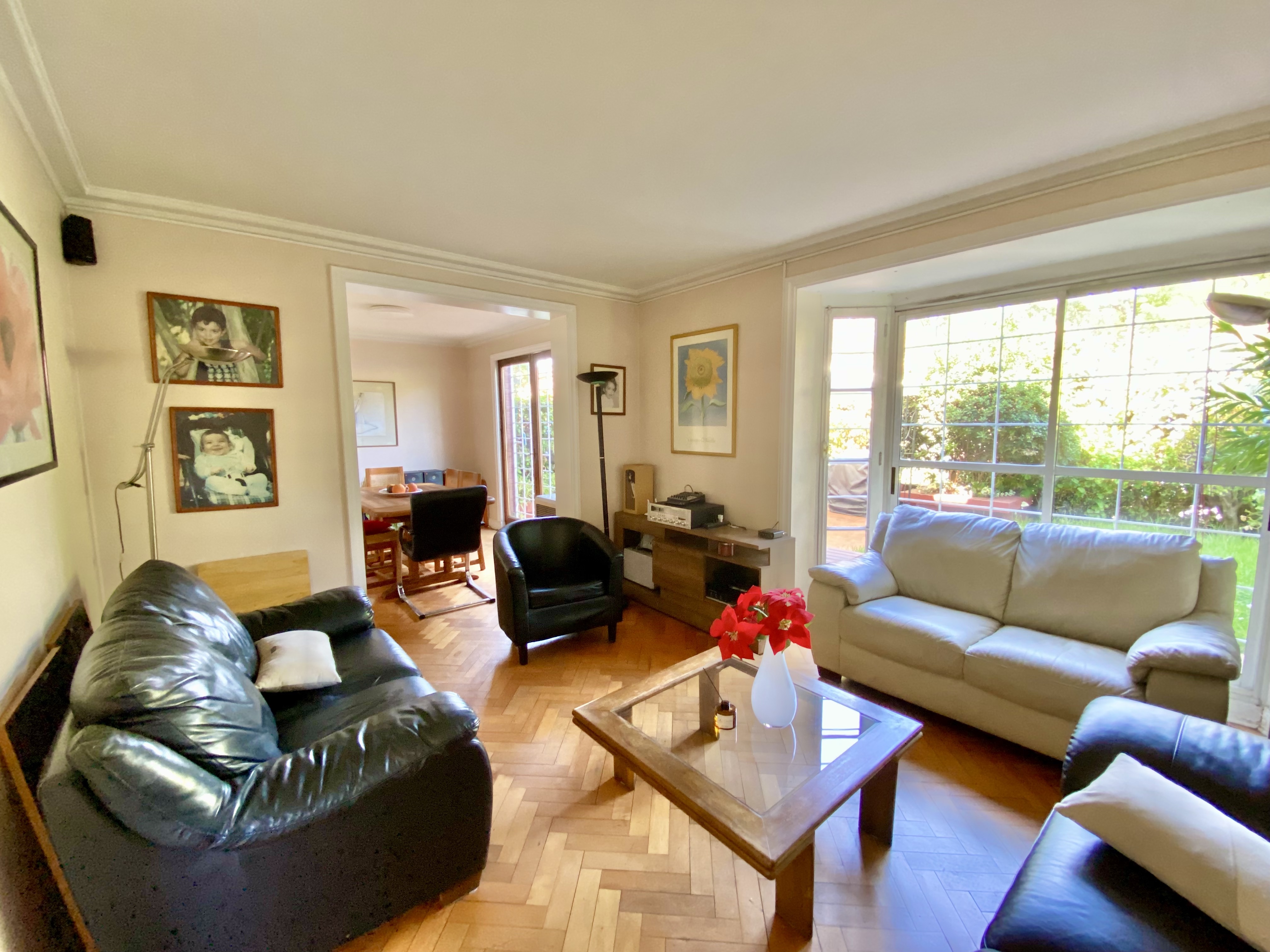 Se ingresa a la casa a través de un hall de acceso con baño de visitas. El living cuenta con un tradicional “Bow window”, con vista a un lindo jardín. El comedor es independiente y tiene acceso a una amplia terraza.